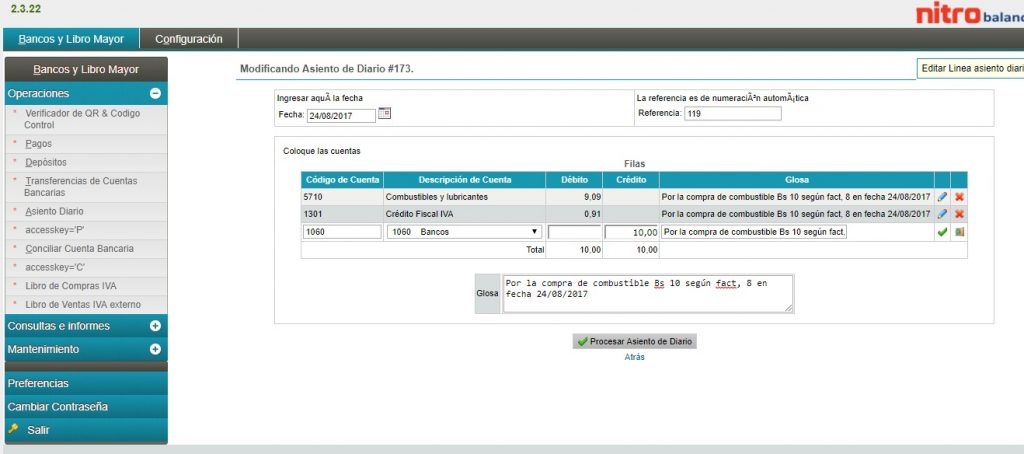 La contabilización de la factura de combustible sería de la siguiente manera.