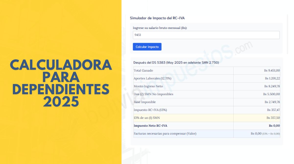 Prueba nuestra calculadora tributaria para dependientes: primero visualiza el antes y luego el después con la nueva modificación, mostrando la diferencia y, si precisas facturas, qué monto en facturas necesitas.