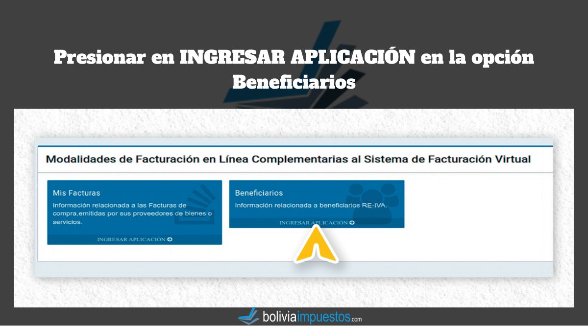Contraseña), digitar el código captcha y pulsar en Iniciar sesión. - Presionar en INGRESAR APLICACIÓN en la opción Beneficiarios