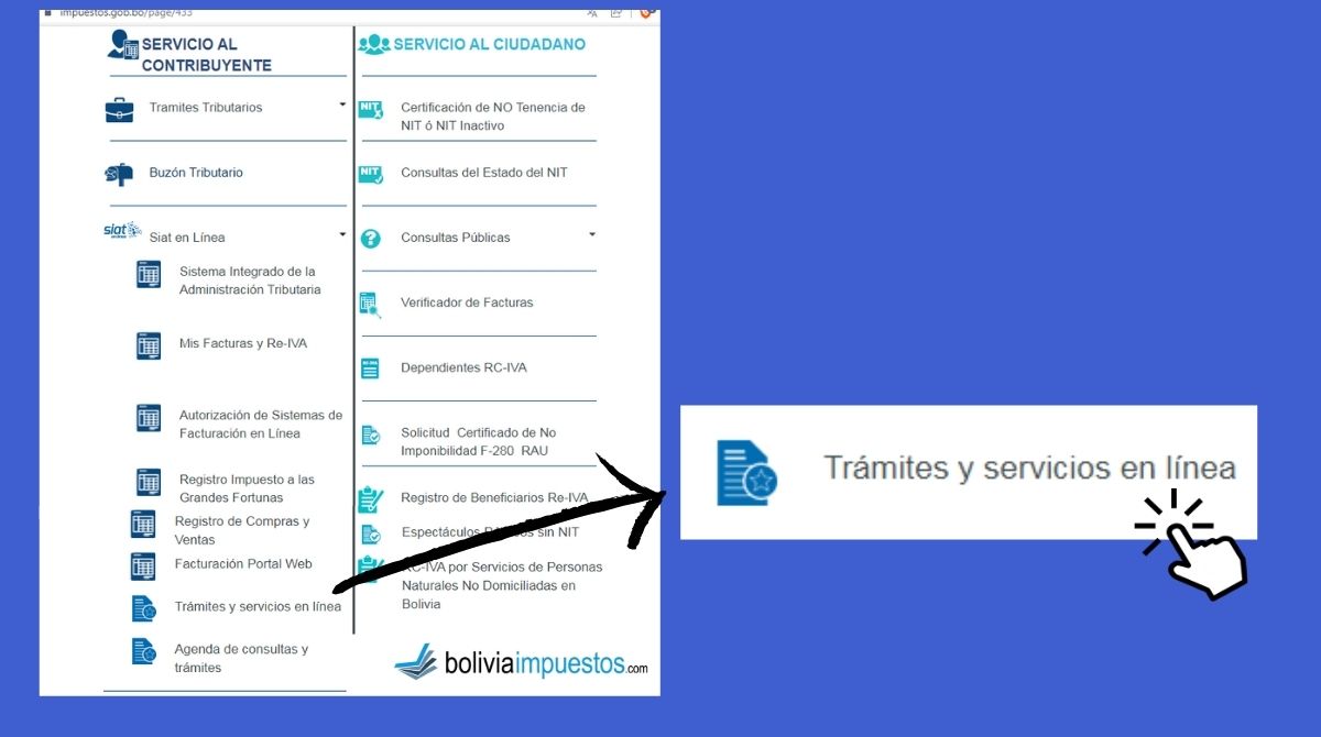 Una vez dentro del sitio web, busca la sección de «Trámites y Servicios en línea» en el menú principal del SIAT en línea. Esta sección es clave para realizar el cambio de método de depreciación de forma eficiente y en línea.