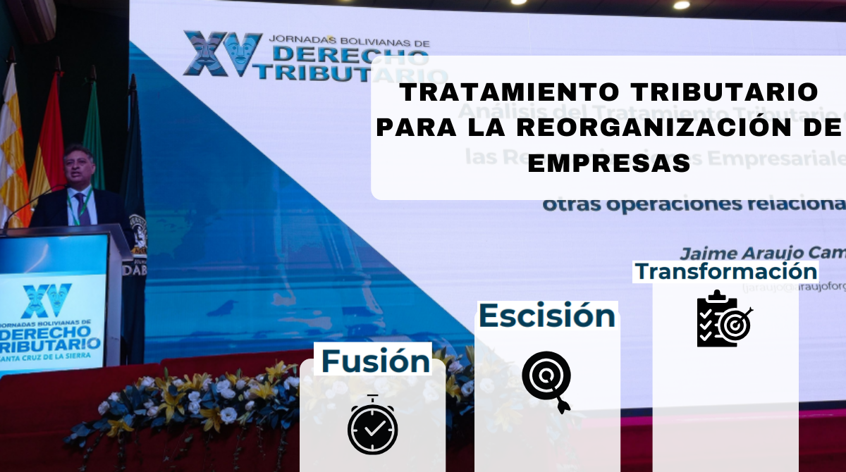 Una de las exposiciones que tuvo las XV Jornadas Bolivianas de Derecho Tributario tema: Tratamiento tributario para la reorganización de empresas y operaciones relacionadas