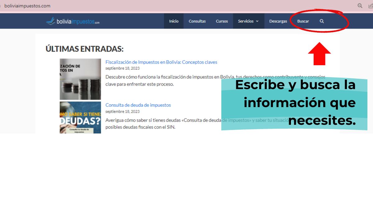 De igual manera puedes encontrar la información que necesitas buscando en nuesta base de datos, en el buscador de la Pagina Boliviaimpuestos.blog.