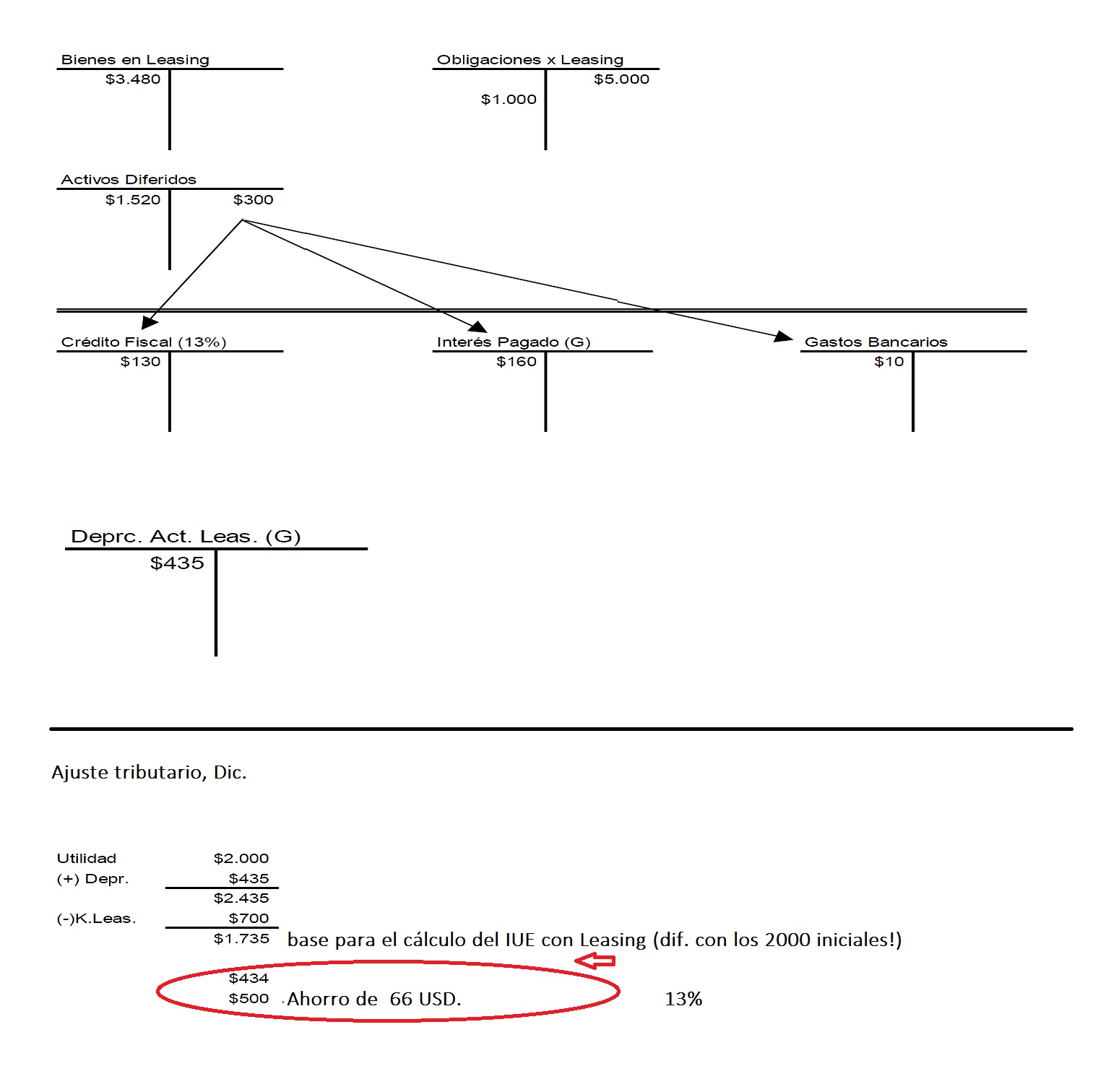 A continuación se muestran la contabilización del leasing, con un aditamento: se muestra en detalle el efecto de ese descuento de la factura para lo que es el pago de impuestos a las utilidades… el leasing trabajando para su beneficio en 3 pasos…