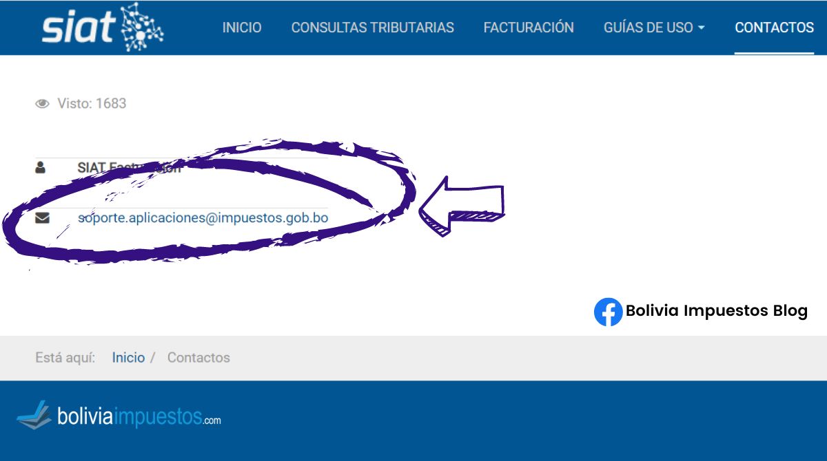 Este mismo correo de soporte está especificado en su página web del SIAT en línea:
