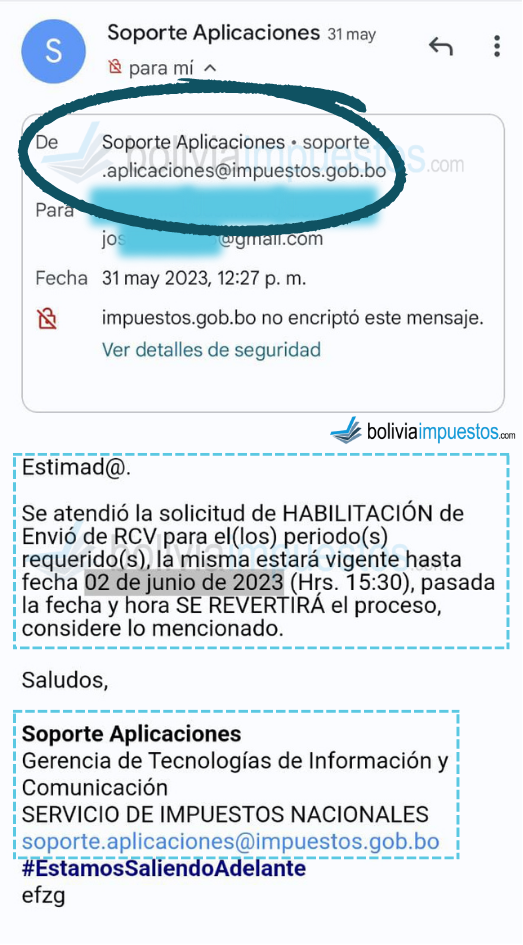 En lugar de lidiar con la frustración de las fallas del sistema, puedes resolver el problema al enviar un correo electrónico detallando la situación al correo de soporte establecido para este propósito: soporte.aplicaciones@impuestos.gob.bo.