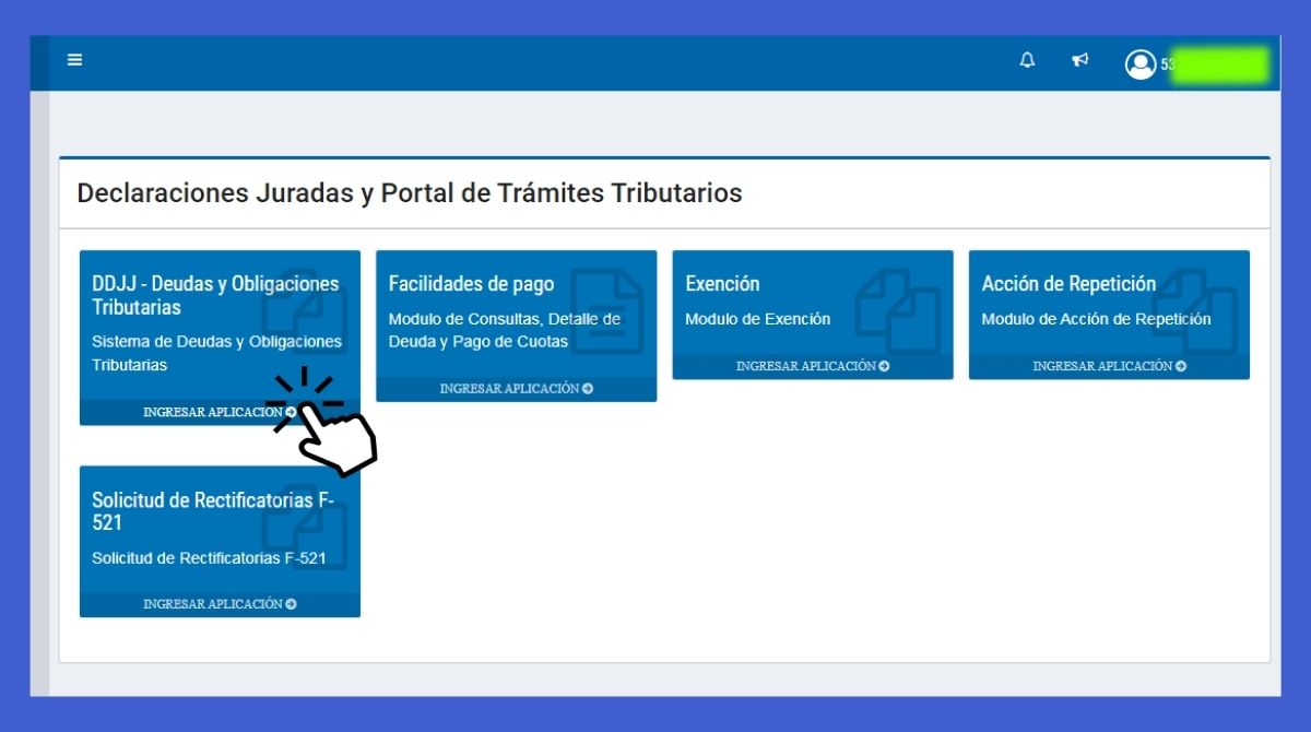 Paso 5: Accede al módulo «DDJJ – Deudas y Obligaciones Tributarias»