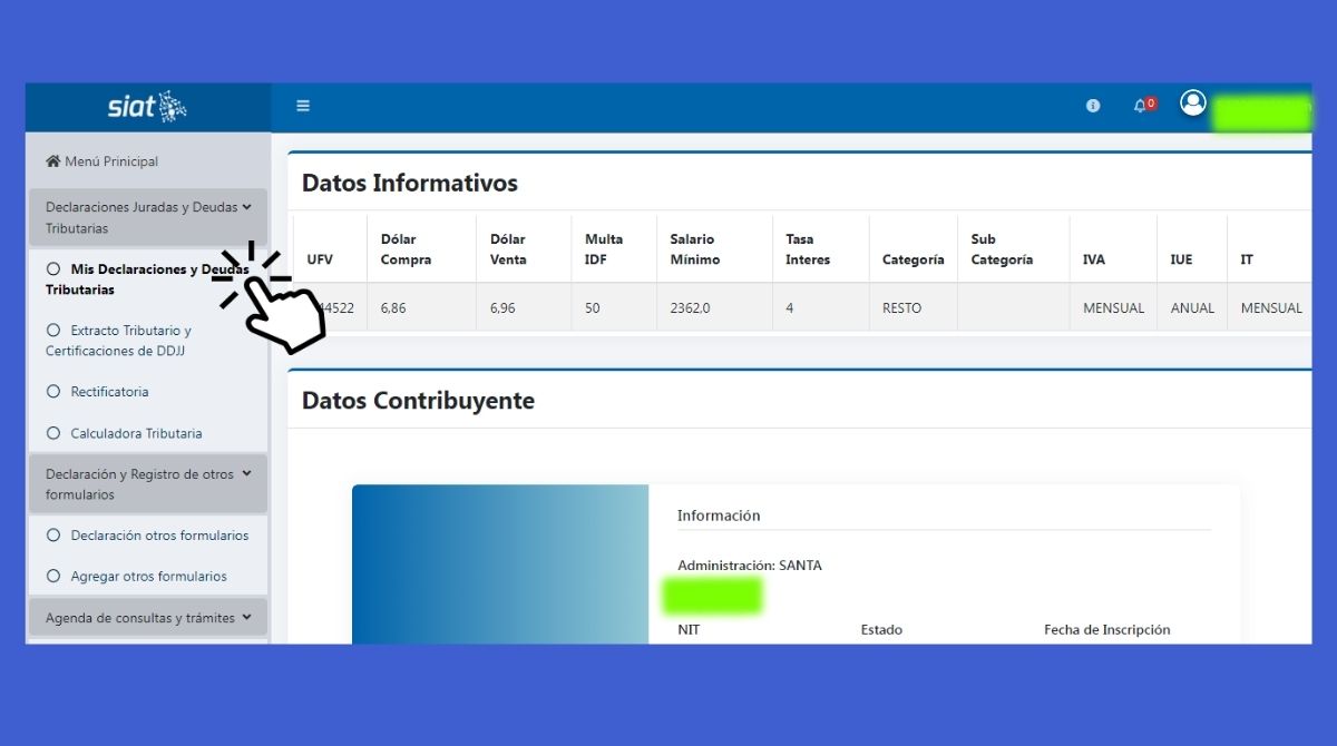 Paso 6: Selecciona «Mis Declaraciones y Deudas Tributarias»
