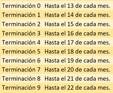 Envían de forma anual (Una vez al año), de acuerdo al siguiente cronograma, según el último dígito del NIT: