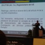 Las conferencias comenzaron con este expositor. El punto de vista fue, en efecto, desde el Derecho Constitucional. La propuesta consistió en establecer que si bien en la CPE (Constitución Política del Estado) boliviana no existía explícitamente este principio de no confiscatoriedad.