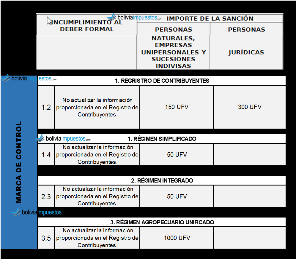 Son todos los parámetros que maneja el SIN para verificar que los contribuyentes cumplan con las obligaciones que se adquieren al momento de registrarse en el PBD, verifican si se registró la información correcta o no.