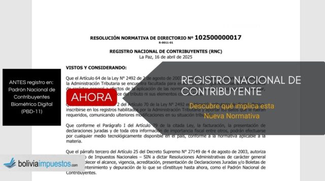 Nueva RND 102500000017: Registro nacional de contribuyentes (RNC) y que significa esto para el contribuyente. Introducción La Administración Tributaria boliviana, a través del Servicio de … Sigue leyendo Nueva RND 102500000017: Registro nacional de contribuyentes