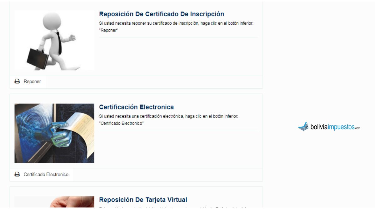 - Reposición del certificado de inscripción al SIN (haz clic aquí para aprender cómo hacerlo).