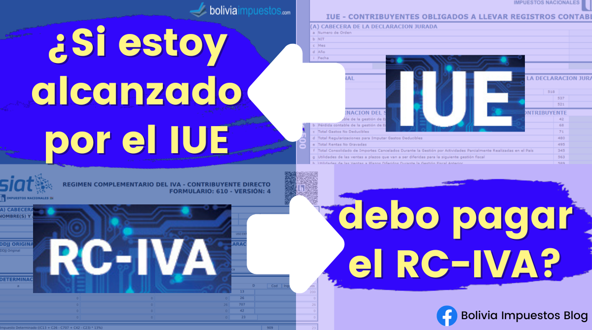 El Artículo 19 de la Ley 843, Título II RC-IVA, establece claramente que el contribuyente alcanzado por el IUE queda exceptuado del pago del RC-IVA.