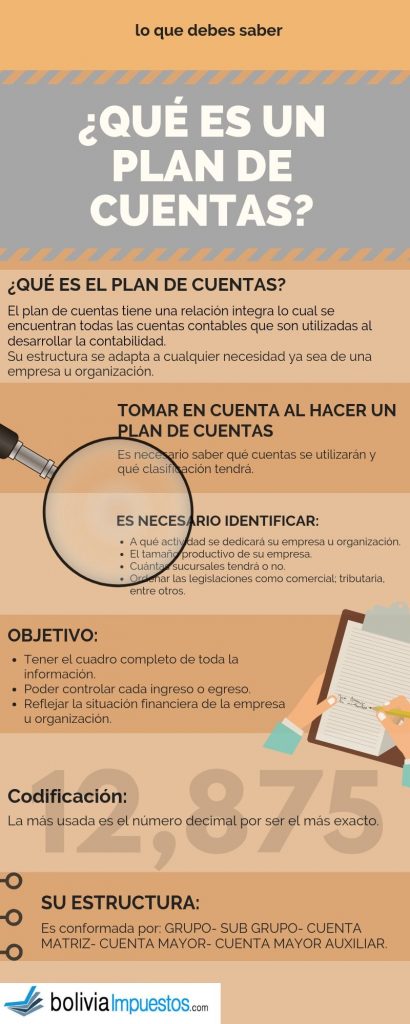 El plan de cuentas es una relación entre cuentas del activo, pasivo, patrimonio, ingresos, gastos y cuentas de orden, que permiten registrar los hechos contables, para lo cual es estructurado flexiblemente para adecuarse según la necesidad de cada empresa.