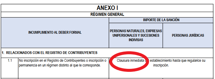 Esto nos traería un clausura como lo indica la normativa hasta entrar al régimen que nos corresponda.