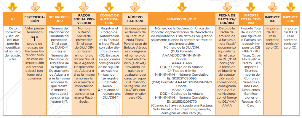 Registro de compras estándar: Especificación 1