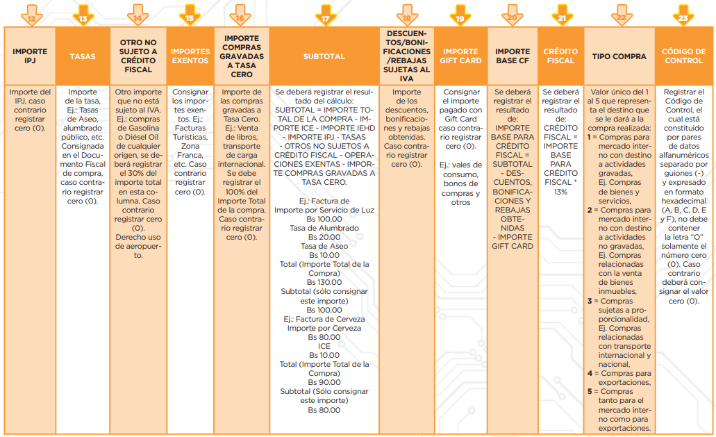 En este registro de Compras se confirman y/o consignan las compras de bienes y servicios, como servicios básicos, materia prima, insumos, boletos aéreos, pólizas de importación, etc., respaldados con la factura o documento fiscal que identifica al comprador (con el NIT).
