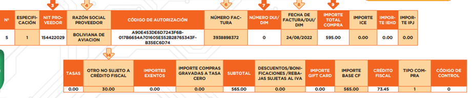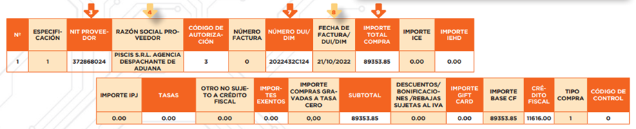 Para acceder a la guía del llenado de las ventas y reintegro (especificaciones 2 al 6) puedes hacer clic aquí [enlace].