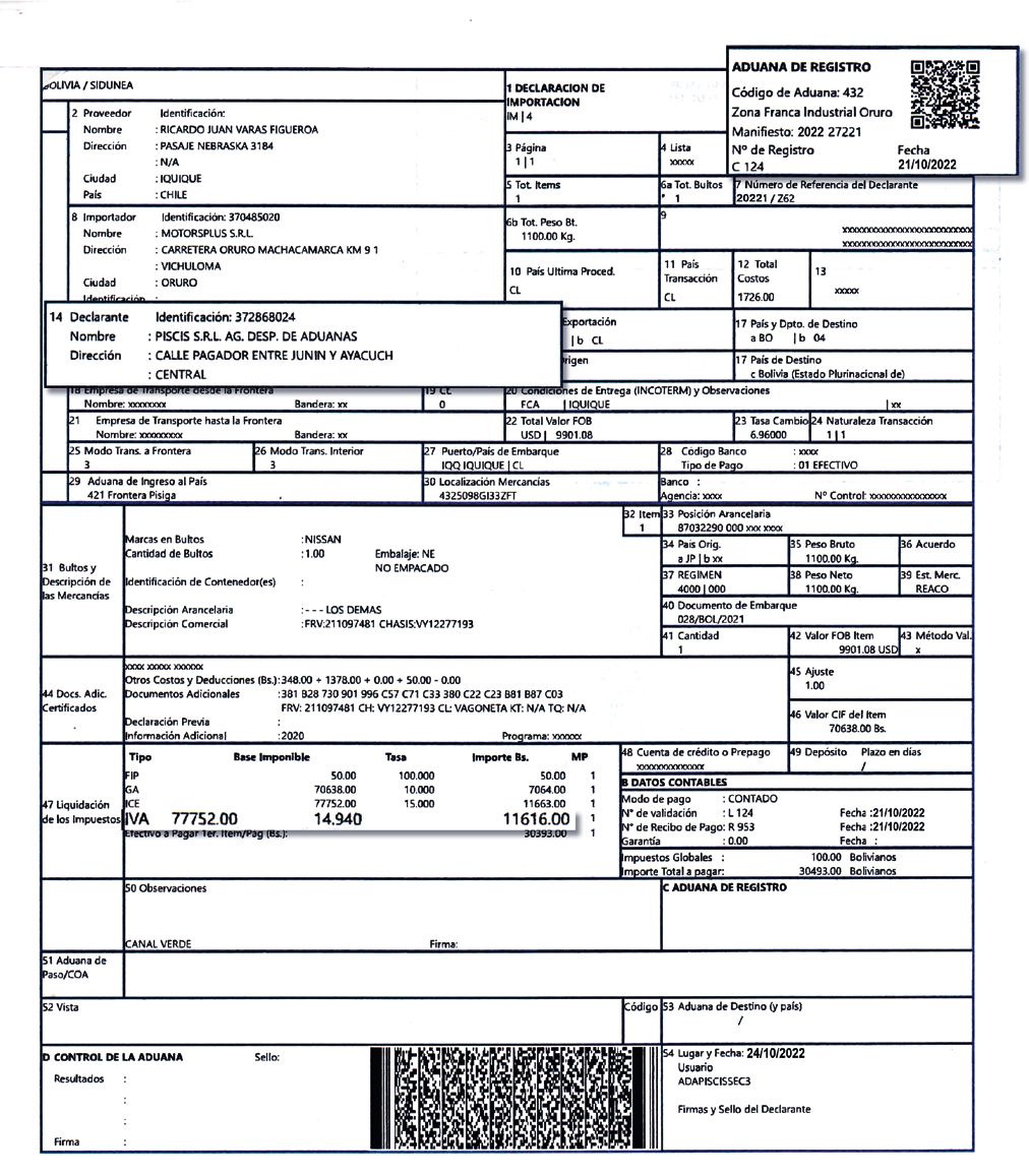 Este es el documento fiscal de la Declaración Única de Importación: