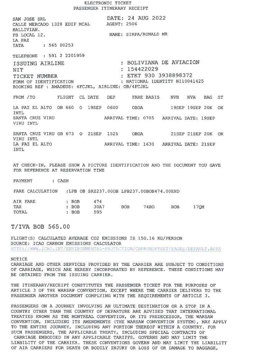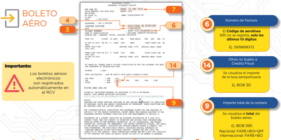 El Boleto Aéreo para el ejemplo es el siguiente:
