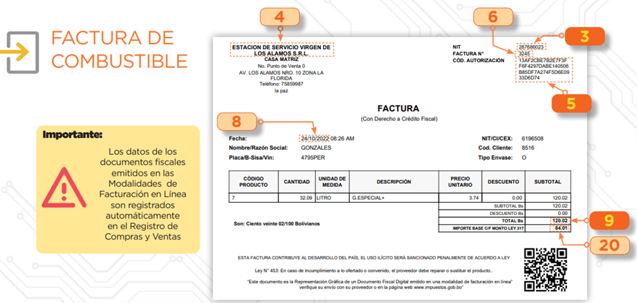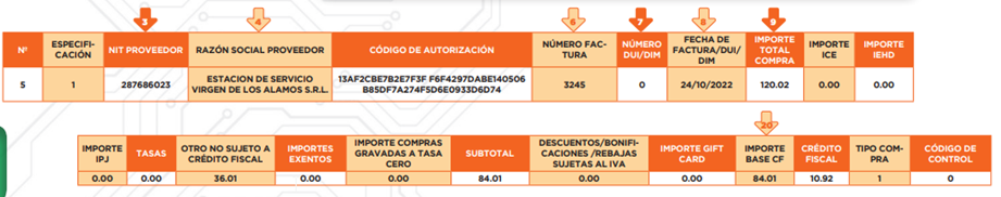 Las facturas de combustible tienen una particularidad (aquí hablamos más al respecto). Es por ello que en este ejemplo veremos que el monto base para el crédito fiscal está especificado en la misma factura.