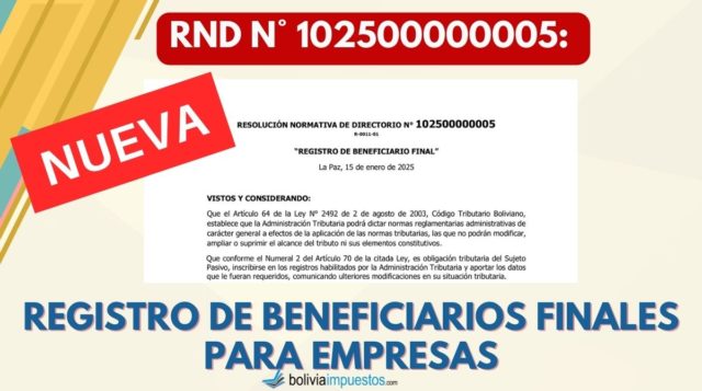Nueva RND N° 102500000005: con la nueva disposición de Registro de Beneficiarios Finales para Empresas. En Resumen El Servicio de Impuestos Nacionales (SIN) de Bolivia … Sigue leyendo RND N° 102500000005: Registro de Beneficiarios Finales para Empresas