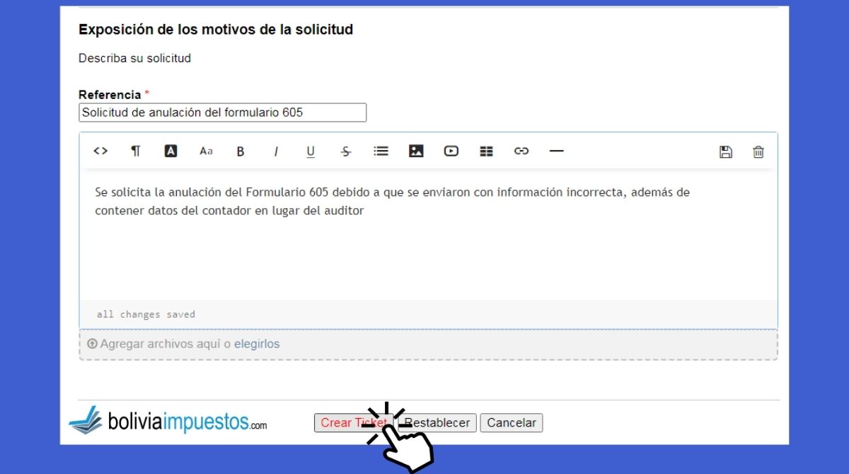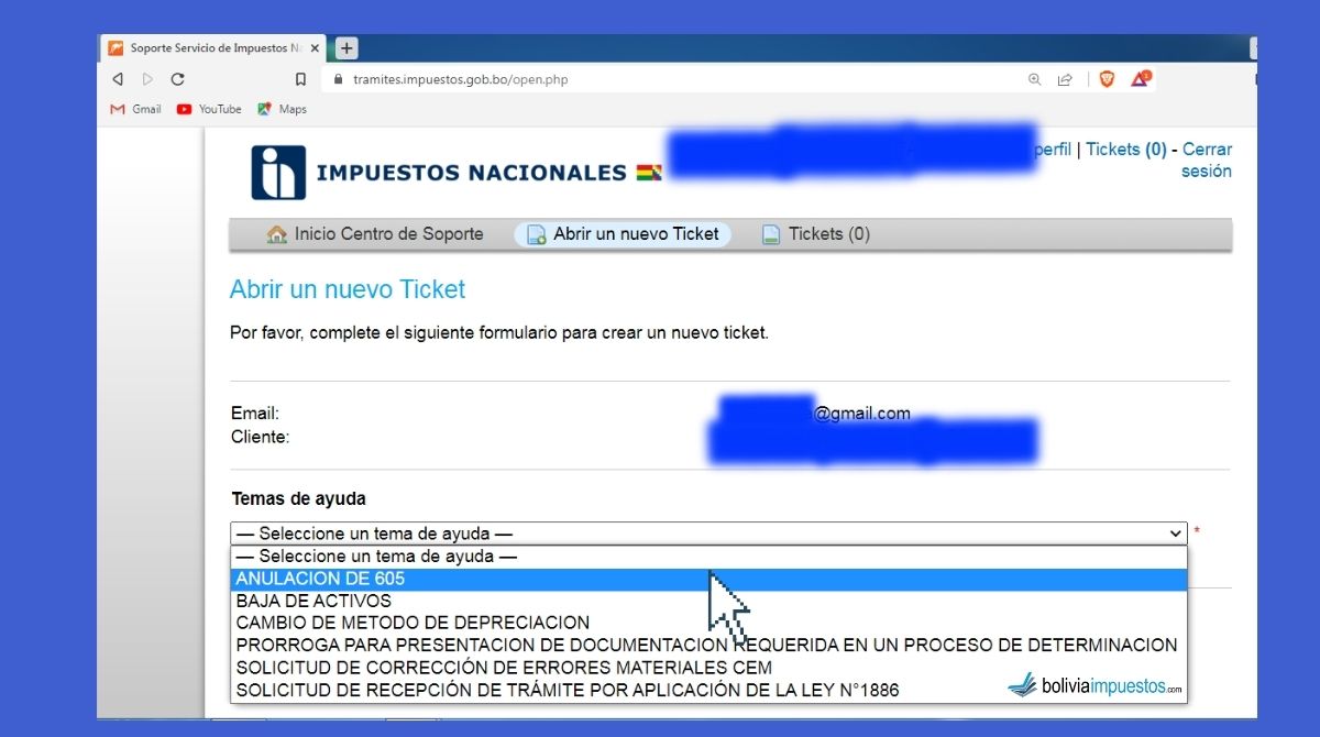 Dentro de la sección de «Trámites y servicios en línea», localiza el ícono o enlace que indique «Abrir un nuevo Ticket». Al seleccionarlo, se abrirá un formulario en el que podrás ingresar los detalles de tu solicitud de anulación del Formulario 605.