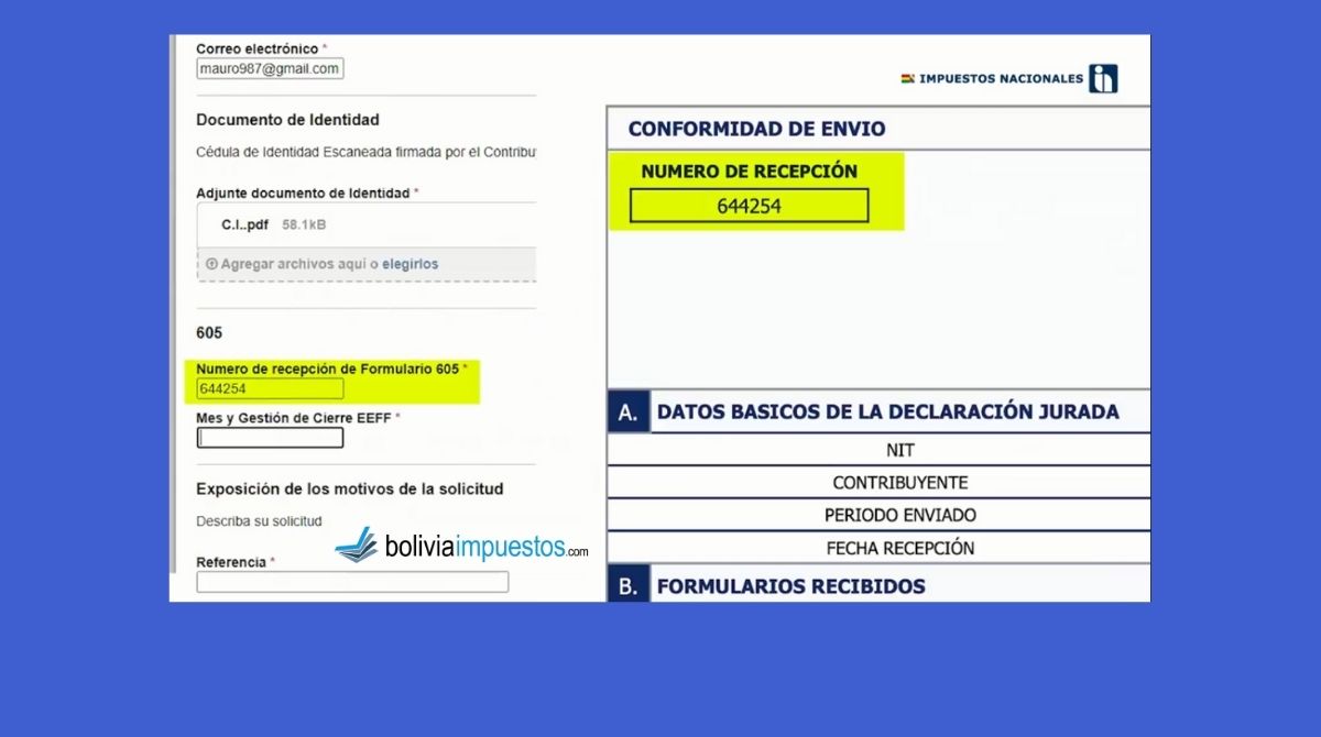 Si se requiere puede adjuntar una copia de la conformidad de envío del Formulario 605.
