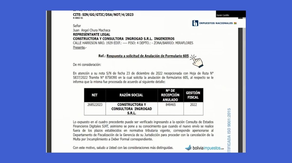 Aprende cómo solicitar la anulación del Formulario 605 de manera sencilla mediante el Siat en línea.