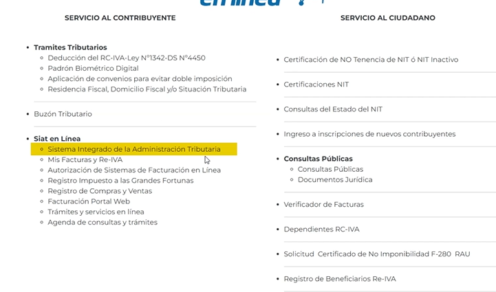 - Selecciona «Sistema Integrado de la Administración Tributaria»