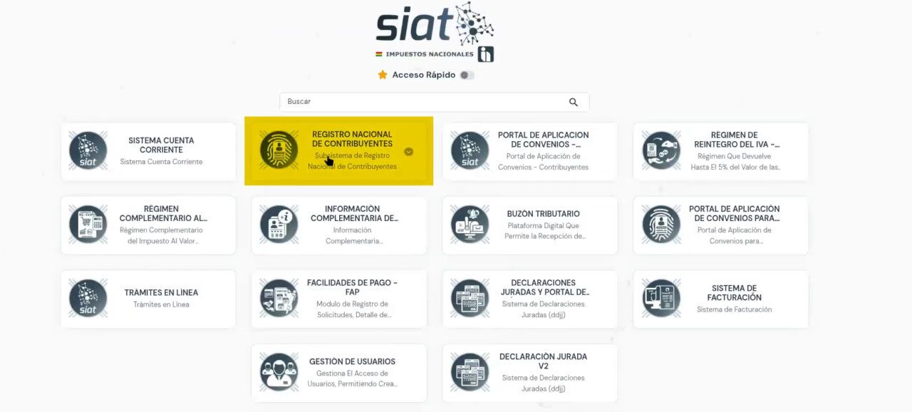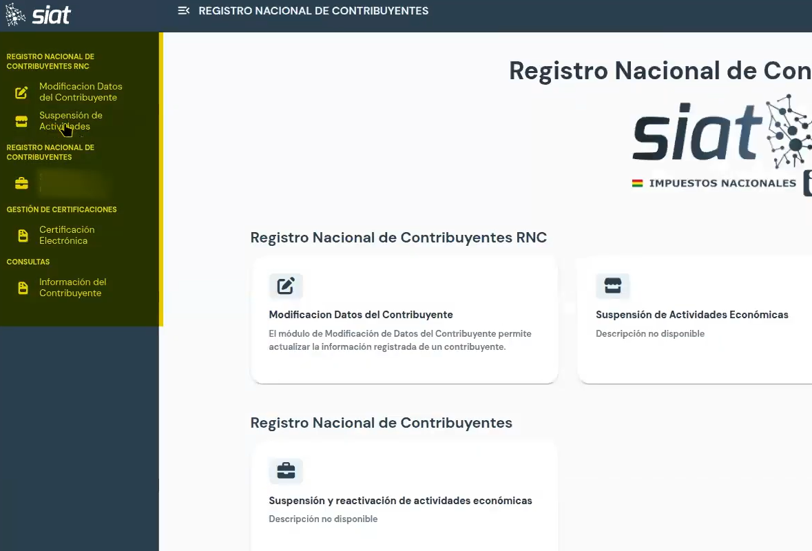 - Dirígete al módulo «Registro Nacional de Contribuyentes»