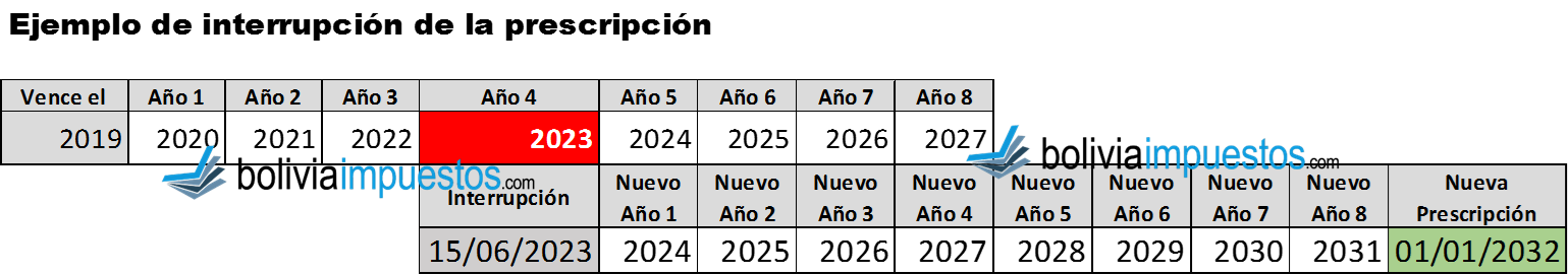 Aquí hablamos más del tema de interrupción de prescripción, tomar en cuenta que solo por los 3 incisos puede darse la interrupción, algún otro documento o al accionar no debe representar interrupción a la prescripción. ya que hay casos en los que el SIN, intenta cobrar a pesar de haberse prescrito basándose en una interrupción.