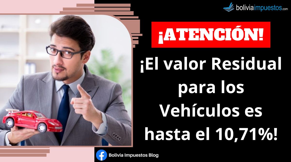 De acuerdo a este artículo, el valor residual se calcula aplicando la tabla de depreciación anual del Decreto Supremo 24051 al valor de adquisición del vehículo, hasta llegar a un mínimo del 10,7%.